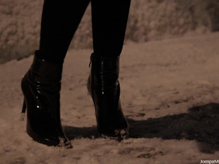 07:32 50% Jeny Smith naked in snow fall walking through the city