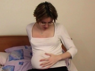 06:54 50% Pregnant brunette in glasses toys both her holes