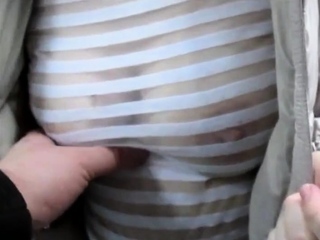 01:25 100% Touching tits in see-throu blouse in a market