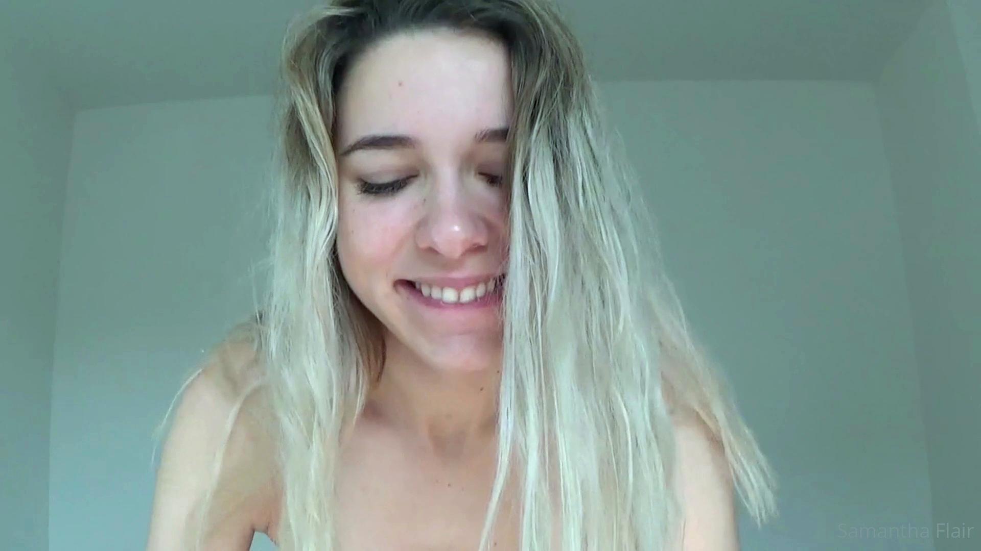 10:57 0% Blonde teen in weird stockings dildoing